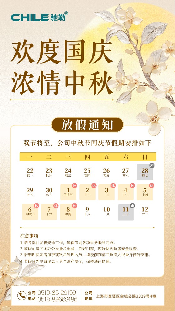 經國務院批準,現將調整2024年中秋節放假安排通知如下:一、放假時間 2024年9月15日至9月17日放假調休,共3天。二、注意事項 節假日期間,妥善安排好值班和安全保衛工作,加強值守應急,確保信息暢通;強化安全意識,嚴格落實各項防控措施,···